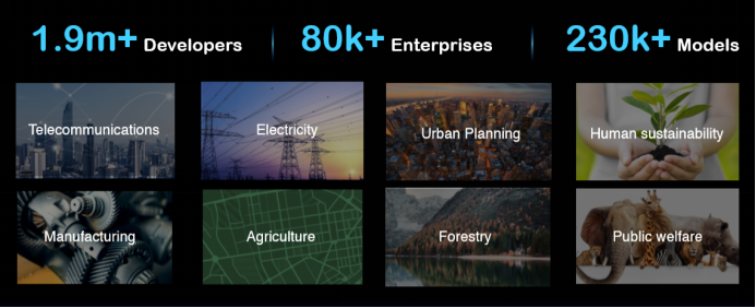 吴甜用一张图展示了飞桨的快速发展,截至目前,飞桨已经凝聚了194万开发者,服务8.4万家企业,创造了23.3万模型,覆盖有通信、电力、城市管理、制造、农业等行业,是国内最领先、服务开发者规模最大、功能最完备的开源开放深度学习平台。
