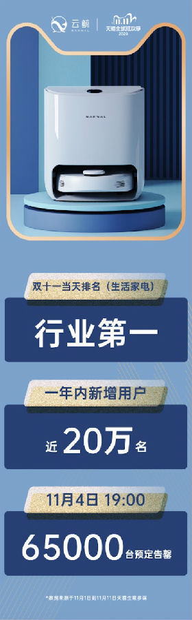 2020年双十一全民购物狂欢节完美收官,各大平台纷纷发布双十一收官战报。在这场一年一度备受关注的品牌大考中,作为上市刚满一周年的“云鲸小白鲸”,凭借着过硬的产品力和独特的营销策略,11月4日的预售中65000台预定告罄,双十一当天天猫店铺斩获生活家电品类行业第一,成为了多数消费者的首选品牌。