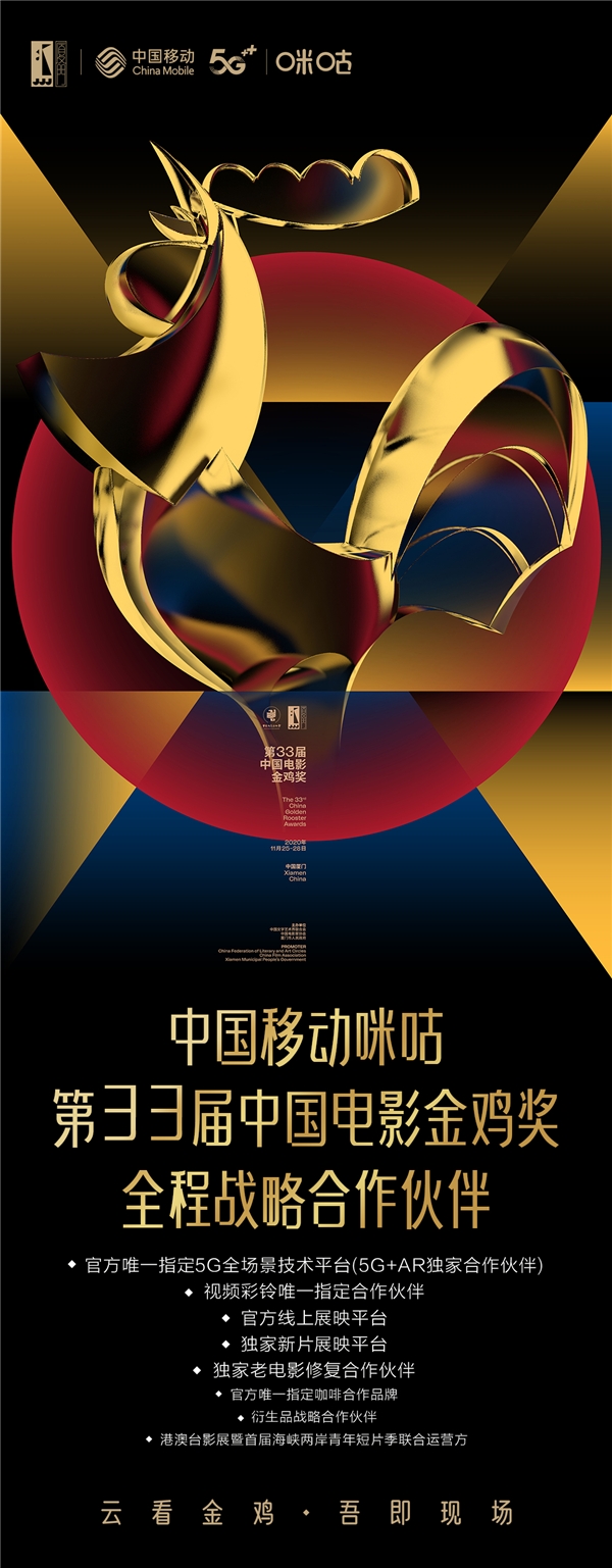 在上周刚落幕的中国移动合作伙伴大会上,咪咕就表示2021年将点亮超高清体娱“5G+8K”计划、云游戏“5G+云帆”计划、视频彩铃“5G+原创”计划、XR“5G+XR先行者”计划四大计划。而今年咪咕与电影金鸡奖的合作、在金鸡节期间的系列重磅发布,也可以看作为未来这一系列计划的序章。