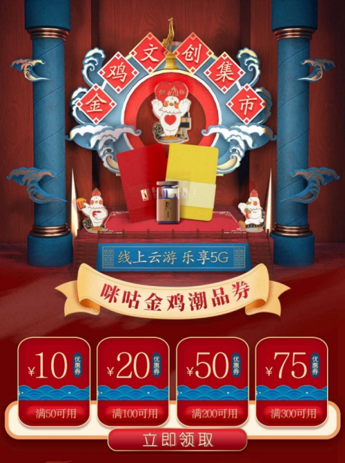除了产品的精心设计,咪MALL还依托平台技术优势,带来5G电商新玩法。结合咪咕圈圈AR扫一扫功能,咪MALL开启扫码金鸡LOGO参与扫金鸡抽大奖活动,提升用户的参与感与互动性,打造新售后服务模式,推动文创新消费。