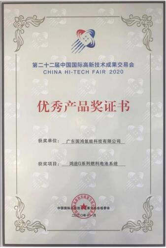2020年11月11日至15日,第二十二届中国国际高新技术成果交易会(简称“高交会”)在深圳会展中心隆重举行,国家部委有关领导、国内外各行业专家学者、企业家代表莅临现场共襄盛举。作为广东唯一的氢能燃料电池展商,国鸿氢能受到了政府领导的高度关注,其更是凭借大功率燃料电池系统项目“鸿途G系列燃料电池系统” 荣获了第二十二届高交会“优秀产品奖”。