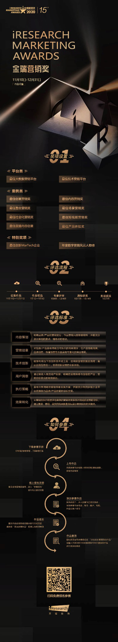 作品征集时间为11月10日-12月31日,艾瑞咨询诚邀您的参与,与金瑞营销奖携手再创繁荣新高!