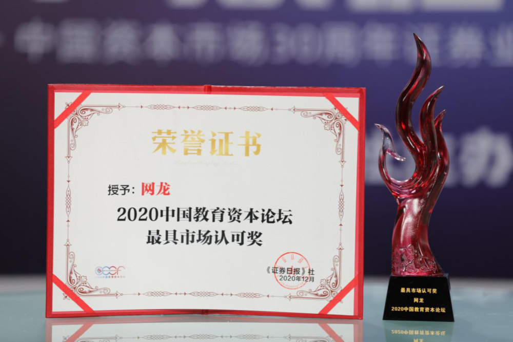 《证券日报》社授予网龙2020中国教育资本论坛“最具市场认可奖”