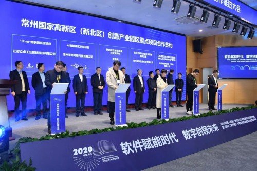 12月3日,2020中国(常州)数字经济产业发展与合作推进大会暨2020(第四届)中国软件和信息服务业领袖年会在常州高新区创意产业园举行,会议由常州国家高新技术产业开发区管委会、常州市发展和改革委员会、常州市工业和信息化局主办。会议聚焦5G、人工智能、集成电路等领域,邀请知名专家学者、行业精英围绕“软件赋能时代数字创领未来”的主题,就数字生产、数字金融、数字政务、数字创意、数字医疗、数字通信等领域深入研讨,共绘数字经济发展蓝图,助推产业高质量发展。