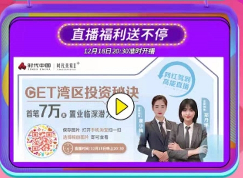 时代中国官方直播间“玩”出新花样,福利送不停。直播间特邀区域营销负责人运用其在地产业深耕多年的从业经验在淘宝内进行专场直播;项目直播间特邀王牌置业顾问从专业的角度解说城市价值及项目卖点,在线解答用户疑问,帮助大家选择心仪房源;为增加与用户的沟通和互动,吸引更多粉丝对时代地产旗舰店的持续关注,直播期间为大家准备不定时福利,现场揭秘惊喜好礼,成功完成付款流程即可获得超值家装大礼包,更有机会抽得最高奖项——大疆无人机一台。
