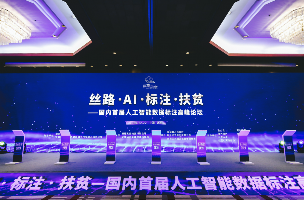 12月22日,首届人工智能数据标注高峰论坛在北京举行。本届峰会以“丝路·AI·标注·扶贫”为主题,由国家信息中心、安徽对口支援西藏新疆工作领导小组办公室指导,新疆和田地区行政公署、安徽省驻新疆援建指挥部主办,皮山县人民政府、科大讯飞、西安三元承办,云测数据、海天瑞声、商汤科技等单位协办。