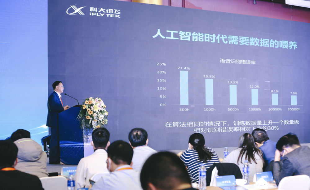 在企业演讲分享环节,亚太地区知名的智能语音和人工智能企业科大讯飞董事长刘庆峰表示,人工智能在各种刚需场景下的应用,进一步推动了国家的新基建的落地发展,帮助整个产业进步形成非常好的良性循环。以科大讯飞语音识别能力的提升为例,可以说功劳一半来自算法的创新,一半来自数据的积累。