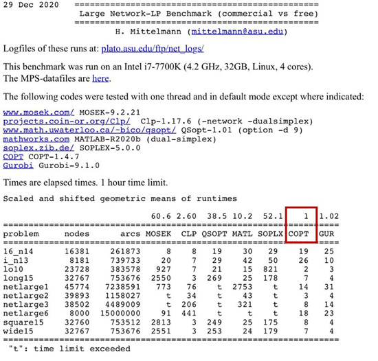 图三:COPT在线性规划大规模网络问题榜单上首次登顶冠军宝座