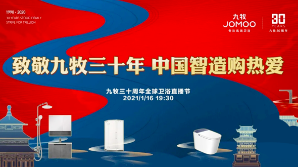 2021年1月16日,九牧将举办“致敬九牧三十年中国智造购热爱”全球卫浴直播节。九牧介绍,这是一场“有力度、有高度、有温度、有深度也有速度”的狂欢之旅,内容丰富,干货多多,可以满足国人有关厨卫空间的全部设想。