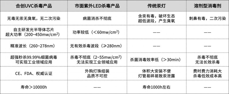疫情爆发以来,江苏合创智能科技有限公司联合江苏固立得精密光电有限公司,共同攻关,凭借先进的光半导体技术研发实力,基于现代防疫学、医学和光动力学,利用特殊设计的高效率、高强度和长寿命的深紫外光照射物体表面、气流及水流,开发出多款超高功率深紫外UVC杀毒产品,其系列产品的光半导体模组功率可达200~450mw/cm2,系列产品经过广州呼吸健康研究院钟南山院士团队的权威检测,合创智能克诺克深紫外UVC杀毒产品与大肠杆菌、金黄色葡萄球菌和流感病毒、冠状病毒接触作用到指定时间,对病原体有100%的杀灭作用,具备秒杀效果,可有效建立起病毒屏障系统。