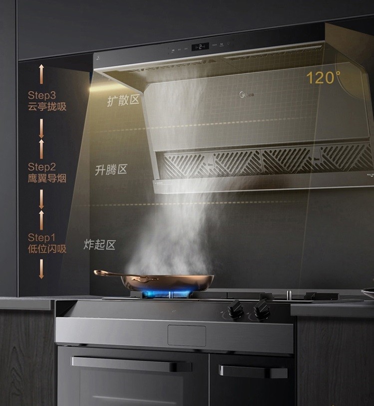 如今人们心里期望亲手烹饪,却因为厨房油烟重而对亲自下厨望而却步。MK不断探索现代高端定制家电边界,平衡专业实用与高端品位,以执着态度匠造厨间作品,为人们带来健康舒适的烹饪体验。MK壹号作品 X7烟机,与Y7烹饪立方的灶具、蒸箱、烤箱进行全局联动,当灶具、蒸箱或烤箱启动后,烟机就会自动开启,用户无需分神操控。同时配置随烟感功能,烟机可以自动感应油烟和油烟浓度,自动调节风力大小,无需动手操控。并且遵循油烟扩散规律,创新设计300mm低位闪吸、120°鹰翼导烟、546cm云亭拢吸的净烟三步曲,全面网罗油烟,轻松应对厨间各式油烟。同时,烟机搭载了110°C高温蒸汽洗功能,深度清洁顽固油污,让烟机保持持久大吸力。