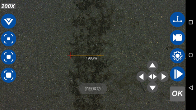 可以通过显微镜对划痕或者磨损进行长度测量、角度测量等,点的位置可以通过方向键进行微调,尽可能获取最精准的数据。
