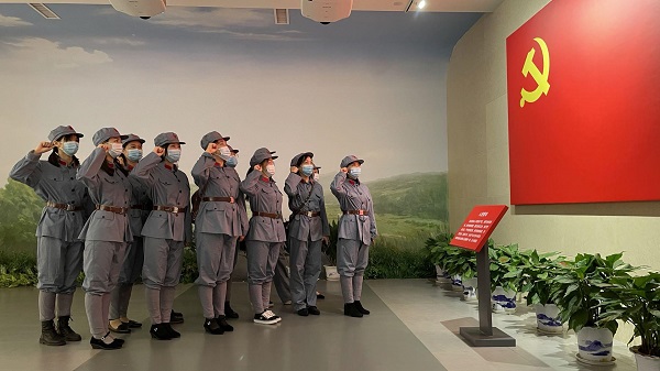 党的纪律建设永远在路上。党员们身着红军服饰“沉浸式”参观中国共产党纪律建设历史陈列馆,展览分为“创立与探索”“推进与曲折”“恢复与发展”和“新时代新征程”四部分。专业的讲解、丰富的图片影像资料、栩栩如生的模型、珍贵的历史文物,让党员们在共同缅怀党的先驱披荆斩棘干革命的光荣岁月、追寻革命先辈光辉足迹的同时,全面了解了中国共产党成立100年以来纪律建设、党风廉政建设以及监督执纪历程,激励党员以革命先烈为榜样,牢记使命,砥砺前行。