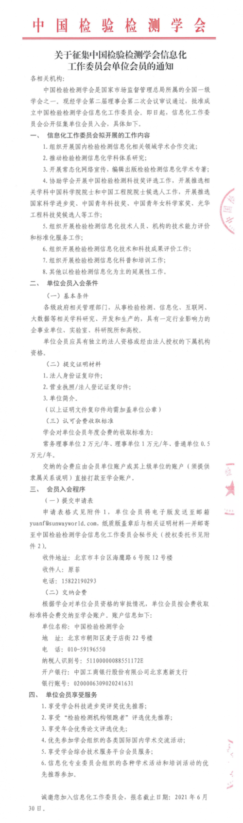 关于征集中国检验检测学会信息化工作委员会单位会员的通知