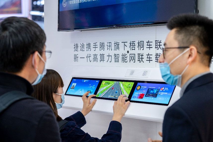 (梧桐车联展示新一代高算力智能网联车载操作系统)