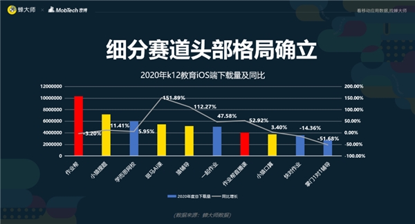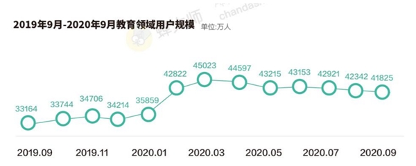 在线教育领域在经历去年疫情的催化后,持续保持高位小幅 波动,也迎来了一场资本盛宴,在线教育品牌数量剧增,另一方面,在前期增量用户大部分得到留存、月活用户持续同比远超去年同期的情况下,用户总量已经形成了稳定态势,走到了“天花板”,根据蝉大师的数据报告,在线教育用户总数已经稳定在了4亿的水平。基于这样的判断,在线教育领域已经进入了立足存量的“下半场”。