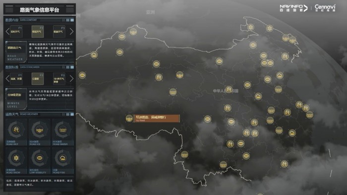 与常规以城市或区县为单位、空间粒度较大的风、压、湿、温等基础车载天气信息不同,世纪高通“道路天气”产品以国家气象局专业气象数据为基础,融合多源第三方数据,结合自身路网信息优势,将空间粒度最小化,支持1km*1km、3km*3km不同粒度的网格发布要求,在行车中提供分钟级更新的道路位置气象信息、能见度信息和路面信息,全方位保障车辆出行安全。