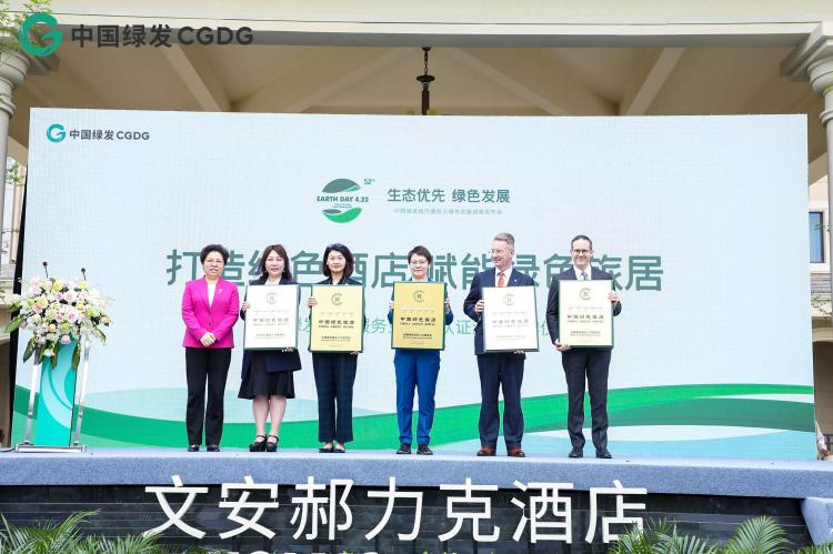 4月22日,中国绿发投资集团有限公司积极贯彻落实国家战略,以“世界地球日”为契机,举办“中国绿发现代服务业绿色发展成果发布会”,开展“生态优先 绿色发展——中国绿发现代服务业422绿色行动”,集中展现现代服务业绿色发展成果,并对旗下获评五叶级绿色饭店及金叶级绿色旅游饭店、绿色建筑、“国家4A级旅游景区”、“省级旅游度假区”“绿色社区”“绿色楼宇”等称号的绿色发展实践项目进行授牌。