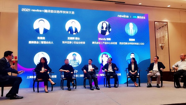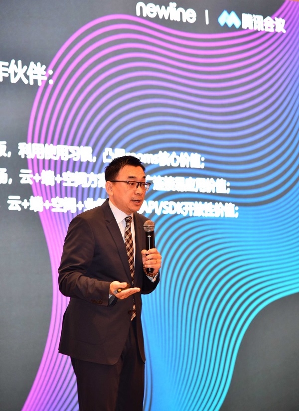立足当下,着眼未来,newline与腾讯会议围绕“云+端”形成了先进、权威的云会议标准化方案。新线科技总裁肖冀邯先生介绍2021云+端战略布局,他谈到newline不仅技术、产品、方案全面升级,更以用户体验为核心,直击市场痛点,与合作伙伴共建生态体系,启动“腾新计划”百城巡展,赋能下沉市场,让云会议遍布中国广袤大地。