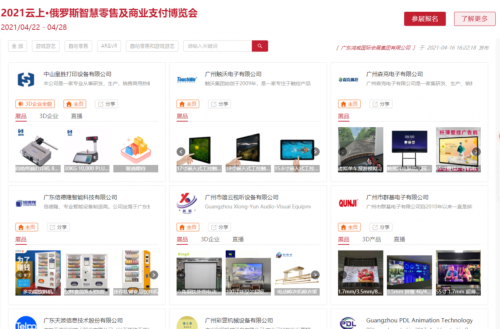 作为助力企业开拓俄罗斯市场、满足中、俄双方跨境贸易往来需求的沟通纽带,2021云上·俄罗斯智慧零售及商业博览会携手“云展动力”平台,以数字化手段帮助广东企业抓订单、促合作、稳外贸。
