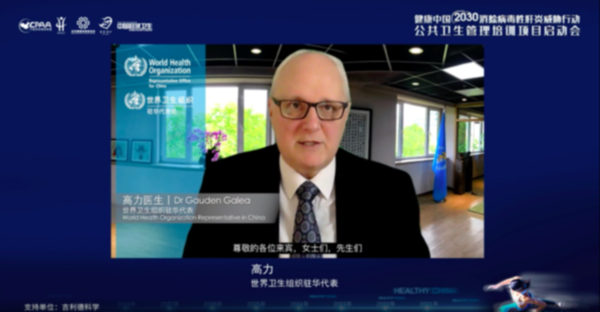 世界卫生组织驻华代表高力博士,中国工程院院士、北京大学医学部教授、中联肝健康促进中心名誉理事长庄辉院士,中国科学院院士、中国疾病预防控制中心主任高福院士,清华大学万科公共卫生与健康学院常务副院长梁万年教授,北京康盟慈善基金会理事长柳莺女士分别进行了嘉宾致辞。