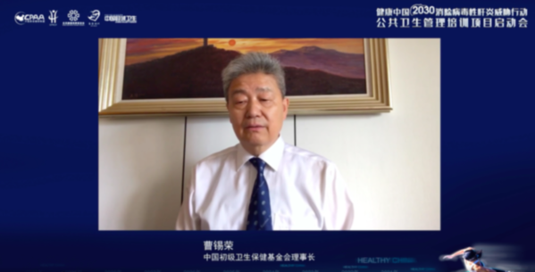 最后,中国初级卫生保健基金会曹锡荣理事长就启动仪式作了闭幕致辞。曹锡荣理事长在致辞中指出,中国初级卫生保健基金会自成立以来,始终以“呼吁和动员社会各界共同关心中国医疗卫生保健事业发展、为构建适应和符合社会发展水平、满足人人能够享有、社会能够负担得起的最基本的卫生保健服务,争取道义、资金和物质支持,保障与提高人民健康水平”为目标和己任。曹锡荣理事长说道:“今天乐见针对县域医护人员的公卫管理培训项目接续开展,各方努力成果初步落地,为整体目标的实现吹响了冲锋的号角。”