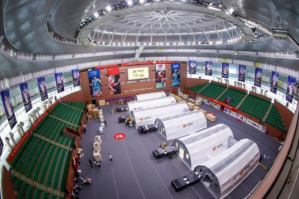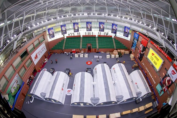 从6月4日20:41抗疫设备陆续进入场馆开始,现场基建师傅们就马不停蹄地开始作业,仅耗时4.5小时就快速搭建起了2套、6个舱体的快装式负压硬气膜核酸检测实验室(以下简称“硬气膜实验室”),并投入试运行。