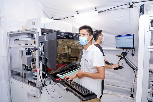 据了解,此次安装的“硬气膜实验室”来自华大智造,采用帐篷式结构,主要面向突发性疫情防控和大规模人群筛查,作为快装式负压硬气膜核酸检测实验室,其具备极高的灵活性。一般情况下,该实验室至少需要6小时完成安装,12小时完成设备调试并投入使用。而此次佛山火眼实验室仅耗时4.5小时即完成建设,打破历史纪录。