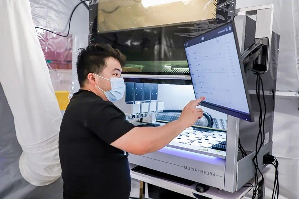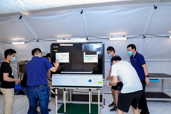 除了紧急驰援佛山“火眼”实验室之外,华大智造的抗疫利器还同步为广州“火眼”实验室提供核心工具保障,日通量达15万单管,是全国日检测通量最高的单体实验室,若采用10混1混采技术,每日最高可检测150万人份核酸样本。