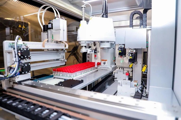 此外,华大智造MGISTP-7000全自动分杯处理系统能实现全自动化样本条码扫描、录入和样本分装程序,全程样本零接触,可在40分钟内完成192样本的分装以及信息处理,解决了核酸检测中最耗费人力和感染风险最高的样本分装工序工作。