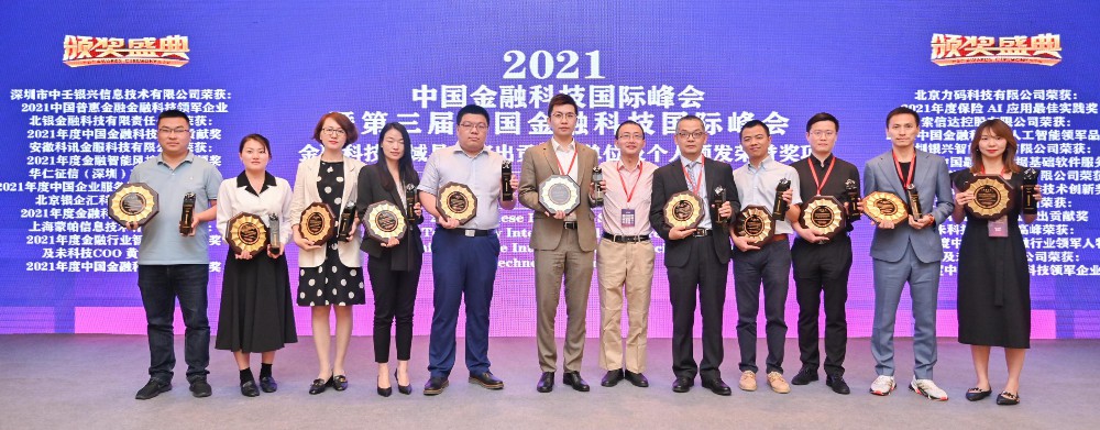 峰会现场,对推动金融科技发展,促进金融科技创新做出突出贡献的单位和个人进行了表彰,其中,及未科技荣获“2021年度中国银行金融科技领军企业奖”,及未科技CEO冒高峰荣获“2021年度中国科技金融行业领军人物奖”,及未科技COO黄宏泽获评“2021年度金融科技创新领导力奖”。