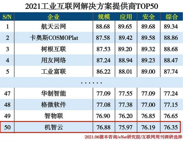 近期,由德本咨询、eNet研究院、互联网周刊联合发布2021年度工业互联网解决方案提供商TOP50榜单,机智云入选榜单。