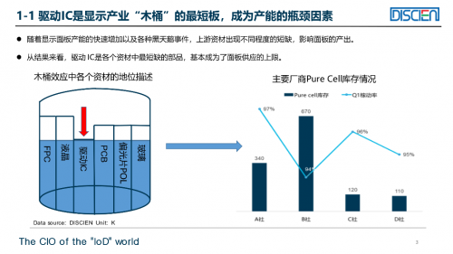 他表示在诸多上游产业链中,驱动IC是产业链木桶的最短板,直接决定了面板的最终供给。
