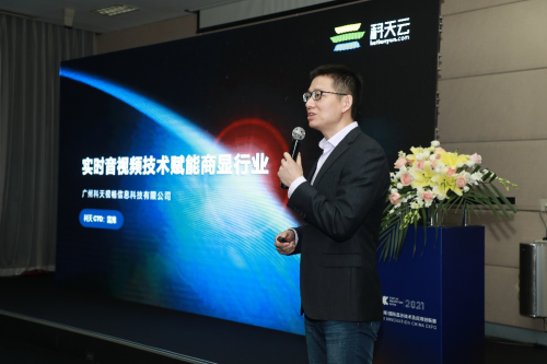 科天云CTO雷潍在会议上发表了《实施音视频技术赋能商显行业》的精彩演讲,他表示科天云专注于音视频协作领域,推出实时音视频解决方案,主要聚焦于视频会议、智能客服、音视频中台、音视频物联网等细分行业。在会议上也分享了应用案例,如:智能会议、视频客服、智慧酒店、智慧交通等,实时音视频逐渐成为主流互动方式,赋能商显行业。