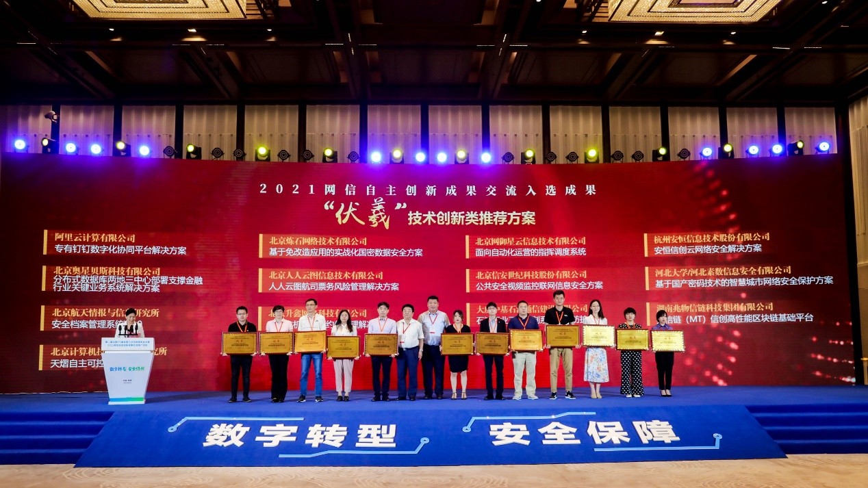 据悉,此次峰会以 “数字转型 安全护航”为主题,众多知名专家学者以及产业界优秀代表前来参会,围绕数字经济和数字化转型期间面临的问题、发展趋势等开展研讨交流。大会现场进行了由关键信息基础设施技术创新联盟、信息安全等级保护关键技术国家工程实验室、《网信自主创新调研报告》编委会联合主办的2021网信自主创新优秀产品、解决方案的颁奖仪式 ,信安世纪华东大区销售总监彭国志先生上台领奖。