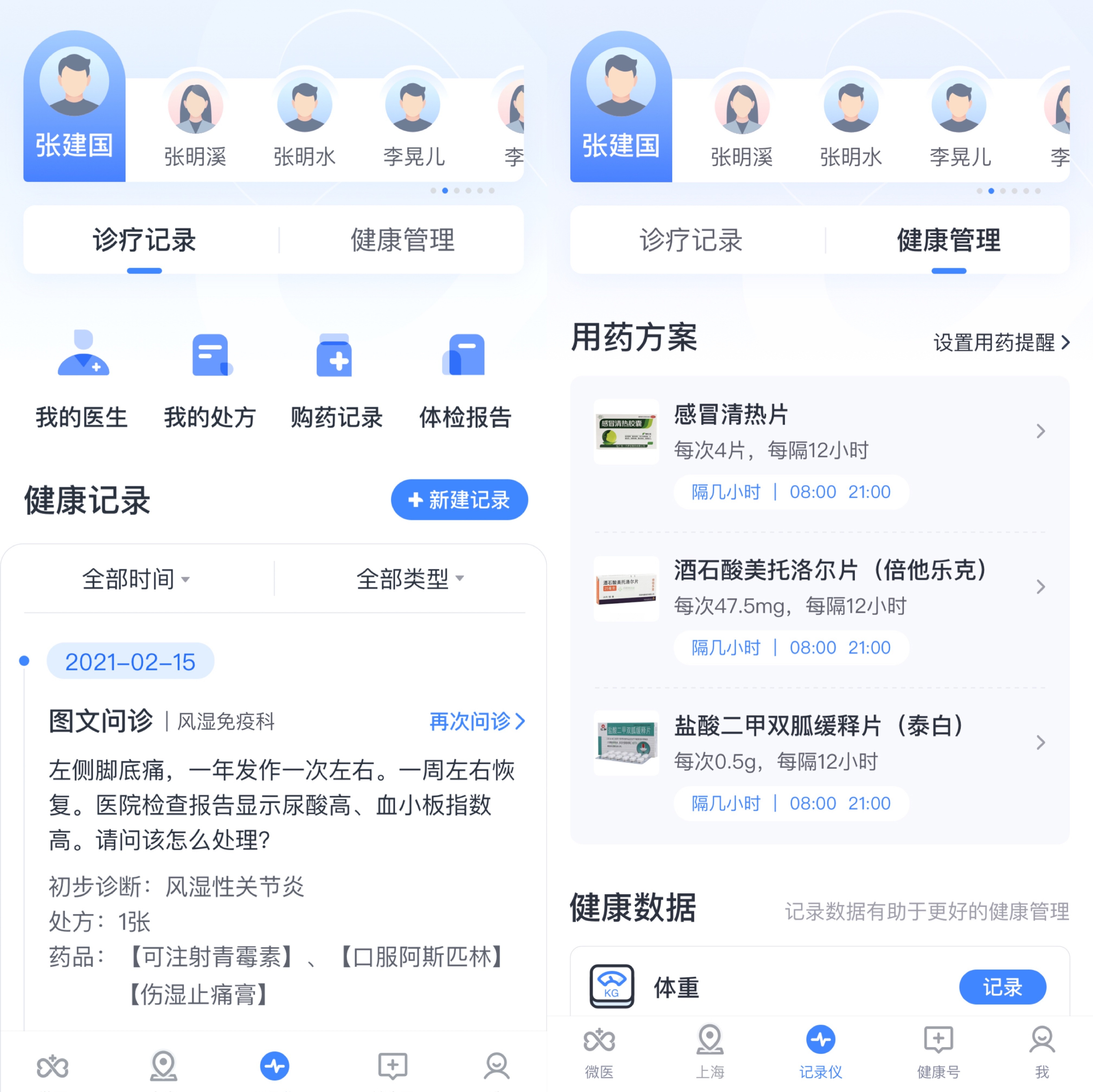 (用户可通过“记录仪”功能来记录全家健康信息,随时可查阅)