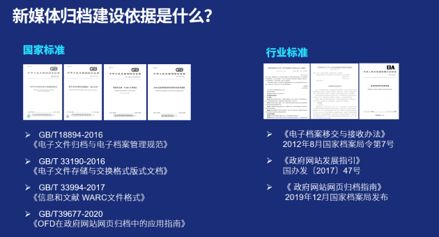 随着新媒体的持续发展及在社会各个方面的不断深入,国家陆续出台相关措施,并制定相关管理标准及规范,指导新媒体归档的发展方向。