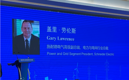 施耐德电气高级副总裁、电力与电网行业总裁盖里 劳伦斯连线发表演讲