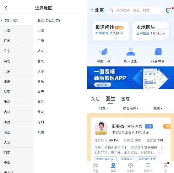 (用户可选择自己所在地域,快速找到家门口的好医生)