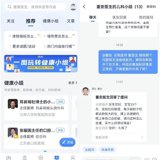 此外,此次改版还全新上线了医患深度沟通小工具“健康小组”,用户可以在微医App上加入医生组建的“社群”,与专家零距离沟通,随时随地找医生询问病情,同时还能与病友交流病情及治疗方案心得,共抗疾病 。