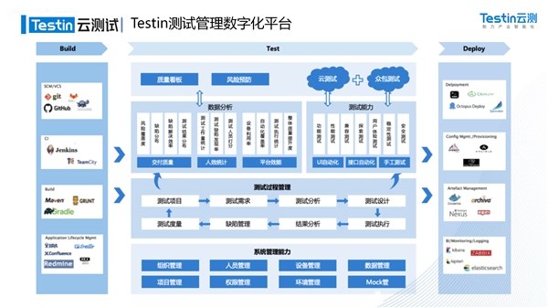 发布日当天,Testin云测旗下子品牌Testin云测试发布“测试管理数字化平台”,该平台是为企业打造的一体化、定制化解决方案,该平台结合AI自动化技术,整合业内先进的测试工具和测试服务,致力于解决企业数字化转型背景下软件测试当中遇到的测试质量、效率和资产管理等一系列问题,实现测试全流程的数字化管理,让测试工作更规范、更高效,实现测试流程的可视化,测试数据的资产化,帮助企业降低研发成本,提高产品质量,推动各行业数字化转型步伐。