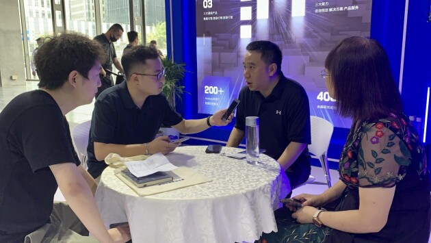 8号上午,成都市市场监督管理局科技与信息处林浩处长一行4人到场参观,并前往数之联展位进行了深度交流,接受了36氪记者专访。