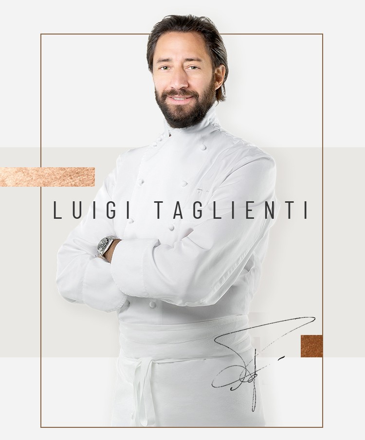 基于幼时在家乡古里亚的记忆,Luigi Taglienti将人类情感中的闪光点融合为意想不到的味蕾体验。过往的记忆、情感、感觉乃至生活片段都成为他烹饪的灵感逻辑。他先后在意大利、法国的著名餐厅进行历练,于30岁荣获《L‘Espresso》指南颁发的“年度青年厨师奖”,并将米其林星厨殊荣收入囊中。