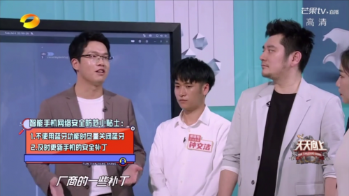 在节目中,王欣也对个人使用智能设备进行了安全提醒,如智能设备在不使用时需要断网、手机蓝牙在不使用时要及时关闭、厂家的补丁要及时更新,网络安全从业者们也在不断配合厂家做好安全更新、不断的弥补漏洞。