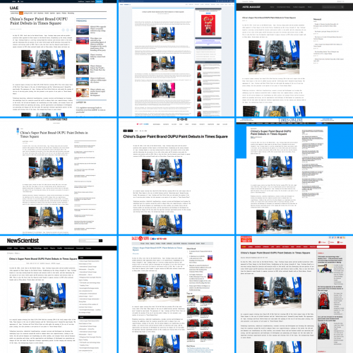 美国当地时间2021年7月15日,欧普涂料形象宣传片及新品宣发视频亮相美国时代广场,向世界亮出了欧普涂料品牌作为内外墙一站式涂料品牌的雄厚实力,同时也展示了2021年度内外墙新物种艺彩丝绒漆及5D仿石漆。这也是2021年继荣耀手机、小米手机、蔚来汽车等民族品牌之后,国内涂料品牌首次亮相海外。