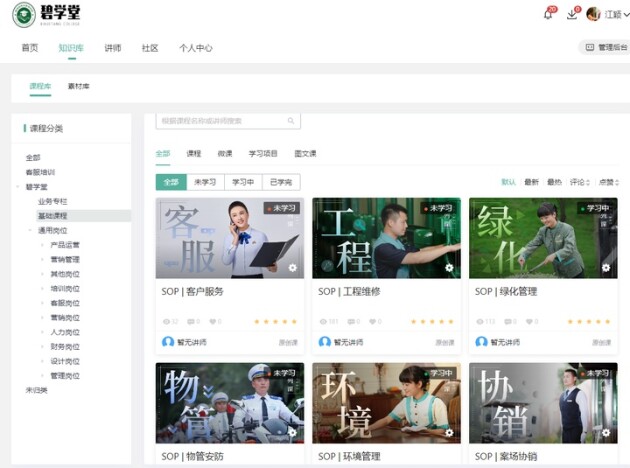 在酷学院与碧桂园服务的共创项目中,双方深度合作,围绕物业行业基础岗位如保洁、保修、保绿、保安、客服、协销等岗位课程内容,向物业从业者的个人用户及企业客户提供课程学习和实操训练等知识赋能。这种创新的解决方案,不仅实现了企业培训部门从成本中心变身利润中心,还解决了中小企业对能力提升的诉求,整体拉升行业能力水平。