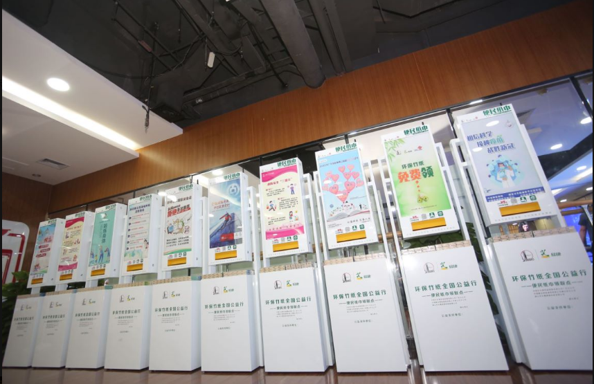 智能纸巾终端不仅能为民生赋能,也能为传播赋能。一方面,通过合作单位和企业赞助纸巾,实现低成本、高效益的宣传效果;另一方面,由中石化提供更环保更优质的本色竹浆纸巾,帮助市民解决临时使用纸巾的需求。