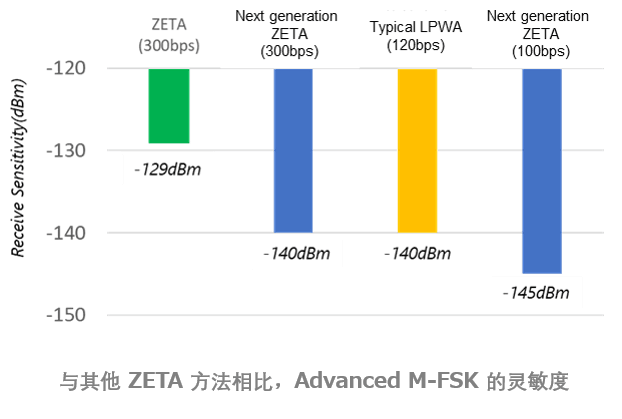“Advanced M-FSK”调制是ZiFiSense 开发的一种新的通信标准。 凭借其增强的容错能力和高无线电波利用效率,在相同灵敏度下,它可以实现比典型 LPWA 方法快三倍的通信速度(bps)。 在相同的通信速度 (bps) 下,灵敏度 (dBm) 提高了 5.3dB。 它能在3至5公里距离内与以 120 公里/小时移动的物体进行通信。 “ZETag”是一种新的“云标签”,它将此功能应用于传统有源 RFID 标签无法处理的应用程序。 一种可能的应用是将标签贴在运输车辆上装载的包裹上,并通过与安装在高速公路交汇处和其他位置的接入点通信来跟踪包裹。 人们对新标签加速物流数字化转型(DX)寄予厚望。