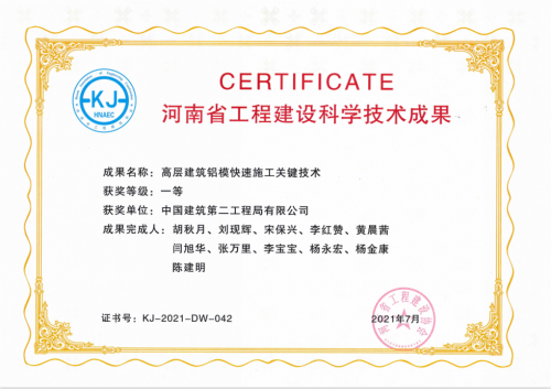 日前,中建二局中原分公司《提高施工缝中钢板止水带一次安装合格率》QC成果被中国建筑业协会授予工程建设质量管理小组活动二等奖。九项科技成果获得河南省工程建设科学技术成果奖,其中一等奖五项、二等奖四项。此前,九项科技成果顺利通过专家鉴定,其中五项均达到国内领先水平。