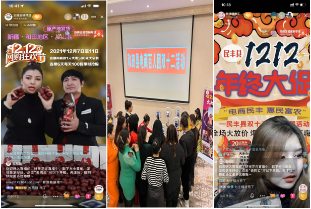本次活动利用电商平台、直播平台推动传统商业数字化,提升电商进农村综合服务水平,促进消费市场转型升级,发挥和田地区区域性特色产业品牌优势的赋能价值,带动农产品的销售和产品溢价能力,和田地区“双十二”农特产品直播乐购节、和田市“双十二”电商年终狂欢节、于田县“1212我们拥抱吧”、墨玉县“援疆助农 产地直销”、民丰县“电商民丰 惠民富农”、皮山县“嗨购双十二·全城送好礼”、和田县“欢度双十二 ‘田’满购物车”、洛浦县“双十二”电商购物节、策勒县“勒购双12 策勒有好物”等系列活动在全地区150个点位先后开展。